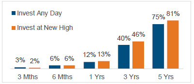 If you strip away the emotion and just look at the data, investing at market highs versus “any random day” has a surprisingly important truth.